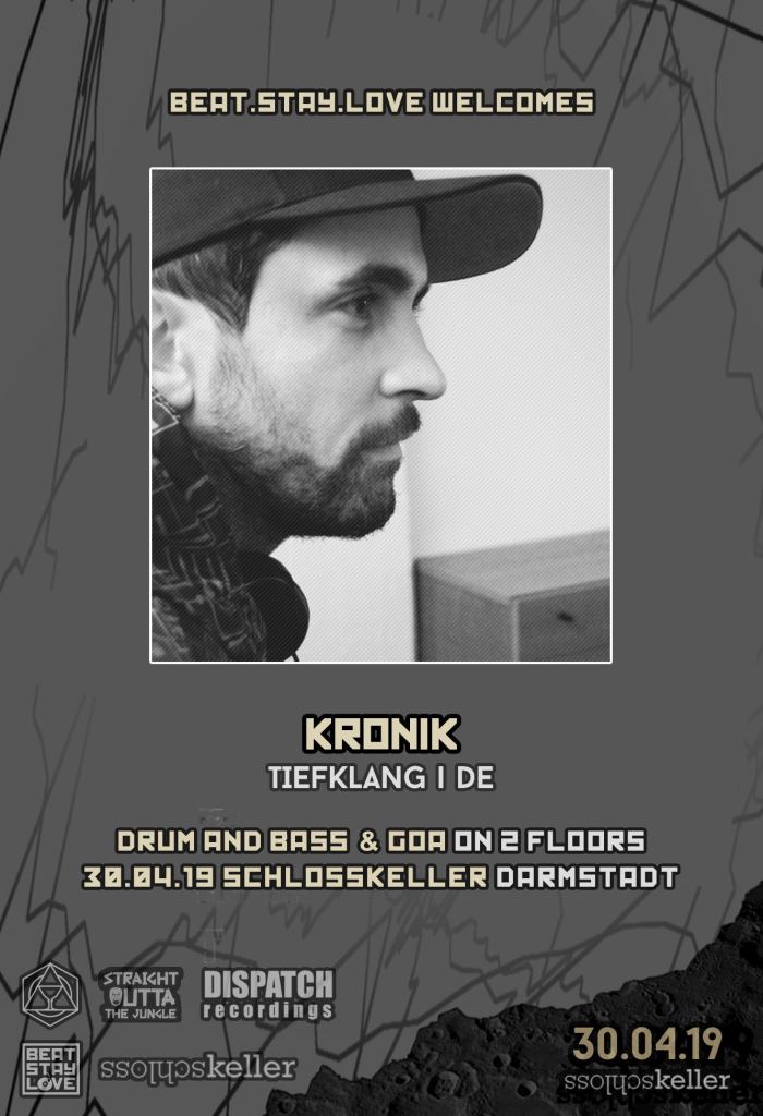 Neben unseren internationalen Headlinern haben wir uns natürlich wieder um tatkräftige Unterstützung aus der (über)regionalen Szene bemüht. Mit DJ KRONIK, Urvater der Tiefklang Crew und somit Aushängeschild der Saarbrückener Drum & Bass Szene, haben wir erneut einen echten Ausnahmekünstler zu Gast, der bereits seit Anfang der 00er Jahre mit seinem einzigartigen, deepen und gleichzeitig treibenden Sound sowie seinen ausgefeilten Veranstaltungskonzepten zu beeindrucken weiß. Egal ob im eher familiären Rahmen oder auf der großen Bühne wie etwa kürzlich beim Fusion-Festival, sein außergewöhnliches Gespür für die Musik, das sich unverkennbar in seinen DJ-Sets widerspiegelt, begeistert die feierwütigen Masse stets aufs Neue. Auch uns freut es extrem, ihn erneut bei uns begrüßen zu dürfen!