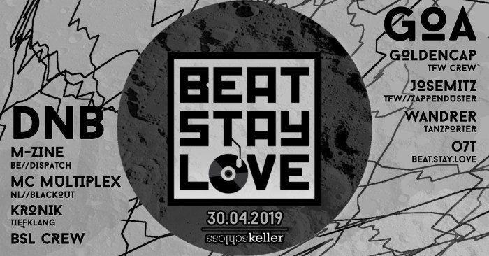 JUST ANNOUNCED: Beat.Stay.Love Party (Drum & Bass + Goa) am 30.4 im Schlosskeller Darmstadt