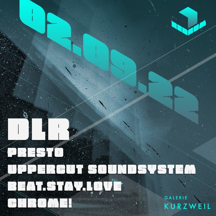 🔥 02.09.2022 Redrum VI feat. DLR 🔥👉 https://ra.co/events/1571979 uppercut & Beat.Stay.Love pres. Redrum VI: Die nächste Redrum steht an und dieses mal bringen wir niemand Geringeres als DLR, Gründer des Plattenlabels Sofa Sound Bristol und bereits seit vielen Jahren einer der aufregendsten und vielfältigsten Künstler in der internationalen Drum & Bass Szene, nach Darmstadt. Daneben … Weiterlesen 02.09.2022: Redrum VI feat. DLR @ Galerie Kurzweil Darmstadt